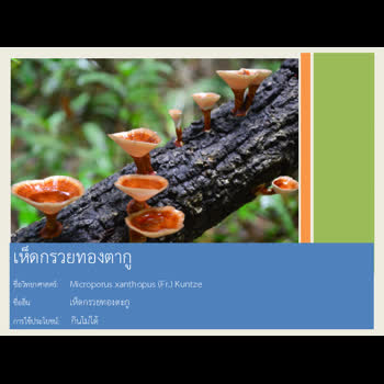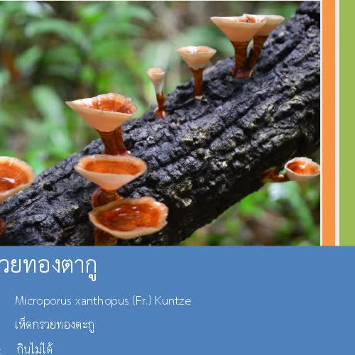 คำสำคัญ : Microporus xanthopus, เห็ด, เห็ดกรวยทอง, อาหาร, เห็ดกรวยทองตะกู, mushroom |