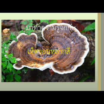 | คำอธิบาย : เห็ดขอนหลากสีชื่อวิทยาศาสตร์: Tremates versicolor or Coriolus versicolorชื่ออื่น เห็ดหางไก่งวงการใช้ประโยชน์: เป็นสมุนไพรรักษาโรค |
