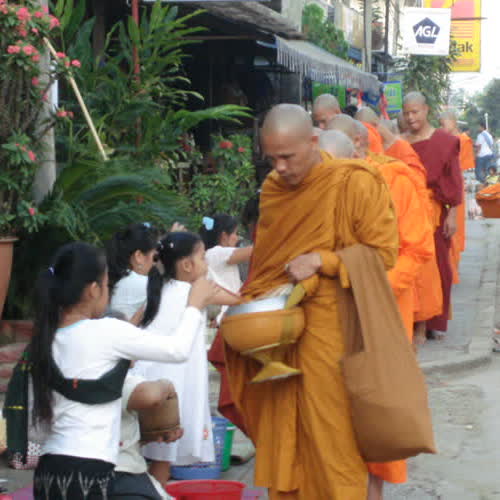 | คำอธิบาย : การตักบาตรเป็นประเพณีทางพุทธศาสนาของชาวหลวงพระบางและประเพณีนี้ได้กลายเป็นจุดดึงดูดสำหรับนักท่องเที่ยวที่มีโอกาสได้มาเยือนเมืองหลวงพระบางจนถือว่าเป็น Highlight สำคัญด้านการท่องเที่ยวไปโดยปริยาย เป็นวัฒนธรรมและขนบธรรมเนียมประเพณีที่ชาวหลวงพระบางปฏิบัติสืบทอดต่อกันมา |