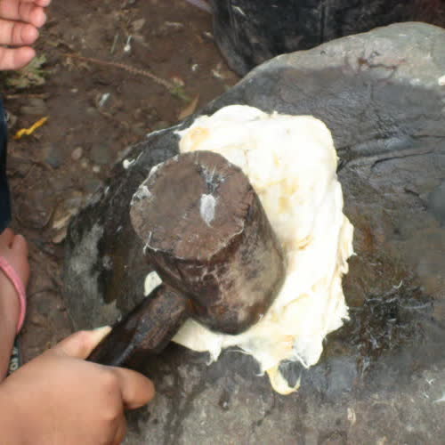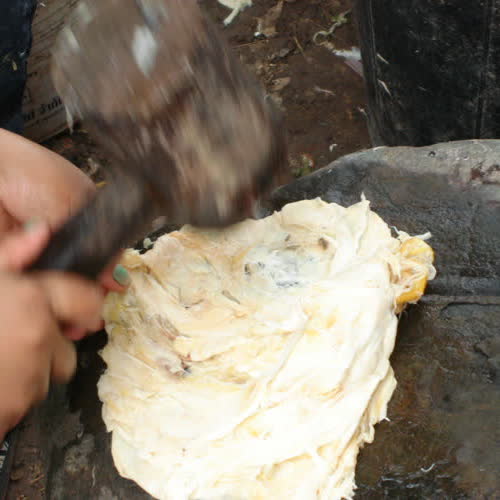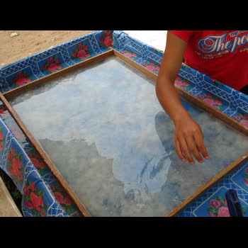 | คำอธิบาย : บ้านช่างฆ้อง นอกเมืองหลวงพระบางไปทางเหนือประมาณ 7 กิโลเมตร เป็นหมู่บ้านงานหัตถกรรมกระดาษสา กรรมวิธีการผลิตใช้แรงงานคนล้วนๆ ที่มีการทำกระดาษสาจากต้นปอสา |