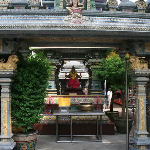 | คำอธิบาย : วัดพระศรีมหาอุมาเทวี หรือ วัดแขกสีลม เป็นโบสถ์พราหมณ์ ตั้งอยู่เลขที่ 2 ถนนสีลม แขวงสีลม เขตบางรัก กรุงเทพมหานคร สร้างขึ้นเพื่อเป็นสถานที่ถวายการบูชาพระศรีมหาอุมาเทวีซึ่งเป็นพระชายาของพระศิวะ ในช่วงวันขึ้น 1-9 ค่ำ เดือน 11 รวม 9 วัน 9 คืนนั้น เป็นเป็นช่วงเวลาของเทศกาลดูเซร่า หรือนวราตรี ของชาวฮินดู ซึ่งเป็นงานแห่พระแม่อุมา และเชื่อกันว่าในช่วงเวลานี้เป็นช่วงที่พระแม่และขบวนเทพจะเสด็จมายังโลกเพื่อประทานพรให้กับมนุษย์ |