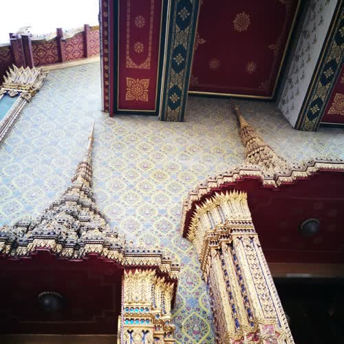 | คำอธิบาย : ภายนอกวัดราชบพิธสถิตมหาสีมาราม เป็นสถาปัตยกรรมไทย บานประตูของพระอุโบสถ มีลายไทยลงรักประดับมุก |