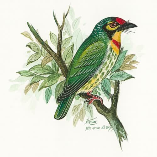 | คำอธิบาย : Coppersmith barbet หรือ นกตีทอง |