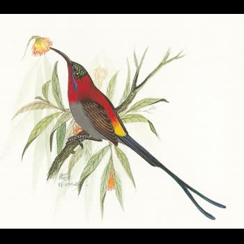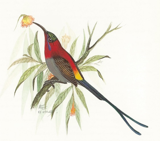 | คำอธิบาย : Crimson Sunbird หรือ นกกินปลีคอแดง |