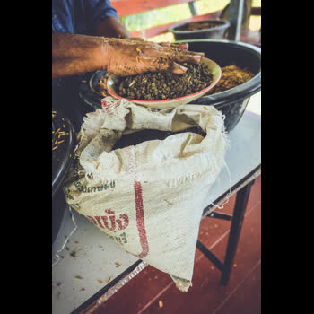 รีวิว : แล้วเอาดินที่เตรียมไว้ ที่บดเป็นผงแล้ว โรยลงไป