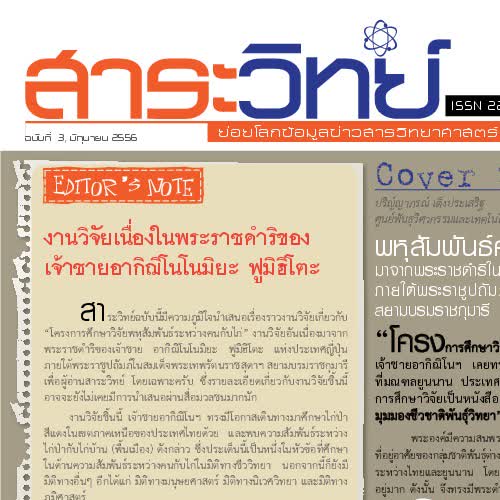 | ชื่อเรื่อง : สาระวิทย์ ฉบับที่ 3 , เดือน มิถุนายน2556 |