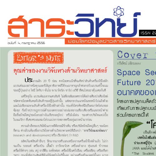 "สาระวิทย์ ฉบับที่ 4 , เดือน กรกฎาคม2556".