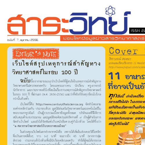 "สาระวิทย์ ฉบับที่ 7 , เดือน ตุลาคม2556".