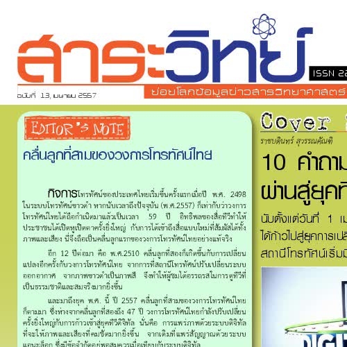 | ชื่อเรื่อง : สาระวิทย์ ฉบับที่ 13 , เดือน เมษายน2557 |