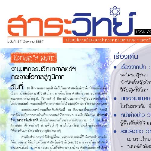 "สาระวิทย์ ฉบับที่ 17 , เดือน สิงหาคม2557".