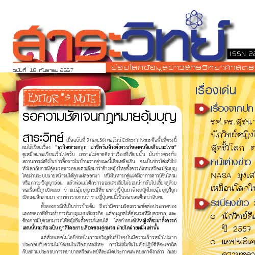 "สาระวิทย์ ฉบับที่ 18 , เดือน กันยายน2557".
