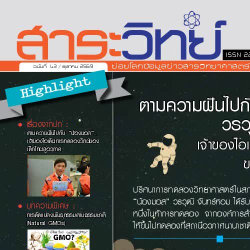 | ชื่อเรื่อง : สาระวิทย์ ฉบับที่ 43 , เดือน ตุลาคม 2559 |