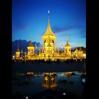 | คำอธิบาย : พระเมรุมาศ ยามที่เปิดไฟ ส่งท้ายตะวันจะหมดแสง |