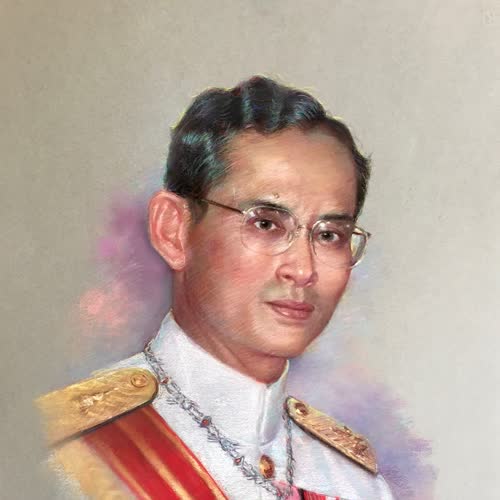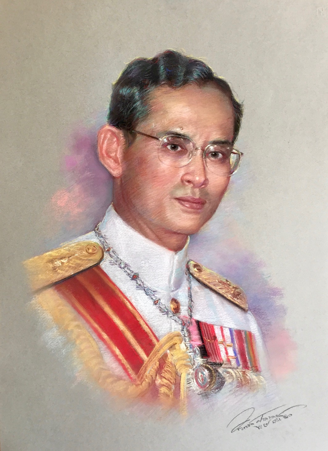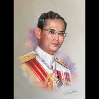 | คำอธิบาย : พระบรมฉายาสาทิสลักษณ์ พระบาทสมเด็จพระปรมินทรมหาภูมิพลอดุลยเดช ด้วยเทคนิค ภาพสีชอล์ก |