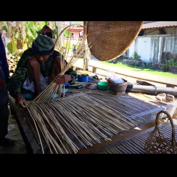 | คำอธิบาย : การสานไม้ไผ่เพื่อผลิตเป็นผลิตภัณฑ์ต่างๆ เช่น ตะกร้าไม้ไผ่ กระด้งไม้ไผ่ ของชุมชนชาวกูยบ้านกู่ อ.ปรางค์กู่ จ.ศรีสะเกษ ซึ่งเป็นการสร้างรายได้เสริมของชาวบ้านในชุมชน นอกเหนือจากการทำการเกษตรซึ่งเป็นอาชีพหลัก |