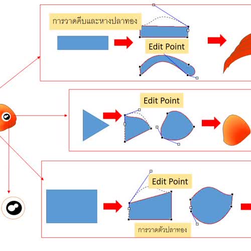 | ชื่อเรื่อง : การวาดปลาทองด้วย Microsoft PowerPoint |