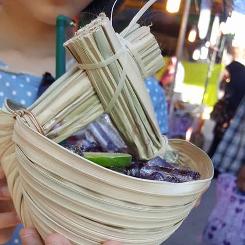 | คำอธิบาย : "หมาจาก" เป็นชื่อของภาชนะที่นำมาใส่น้ำทำจากใบจาก |
