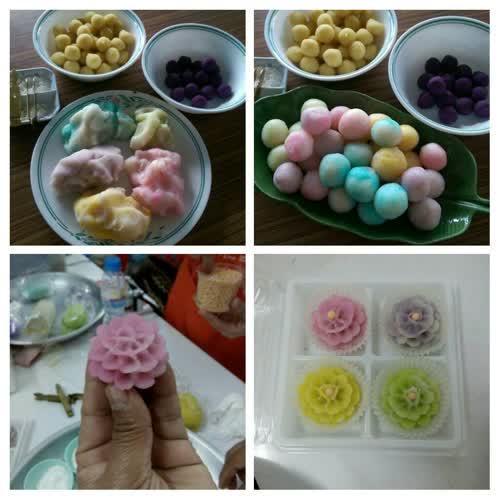 | คำอธิบาย : ขนมผกากรอง เป็นขนมไทยสมัยใหม่ ส่วนผสมแป้งคล้ายกับอาลัวสด คือแป้งเค้ก น้ำตาลทราย กะทิอบควันเทียน สำหรับไส้จะเป็นถั่วกวน มันเทศกวน มันญี่ปุ่นกวน |