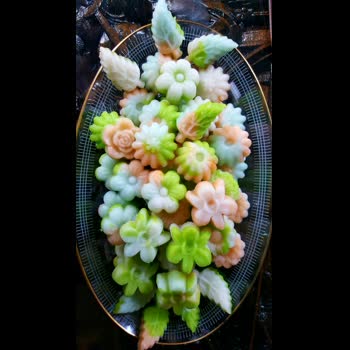 | คำอธิบาย : สัมปันนี เป็นขนมไทยโบราณ นิยมใช้เป็นขนมมงคล ส่วนผสม แป้งมันคั่ว นวดกับน้ำกะทิ น้ำตาล ส่วนผสมแป้งได้ที่ อัดแป้งใส่พิมพ์ แล้วนำไปอบด้วยควันเทียน |