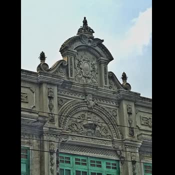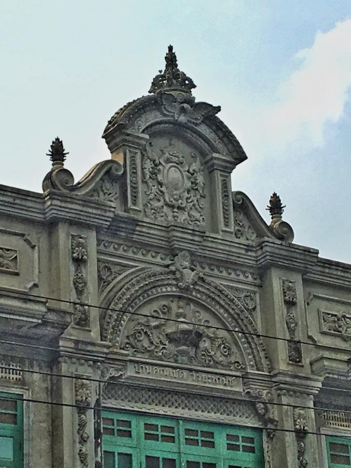 | คำอธิบาย : อาคารเก่าสภาพสมบูรณ์ บนถนนพระสุเมรุ มีป้ายข้อความประกอบลวดลายระบุชื่อเจ้าของอาคาร “บ้านของคุณเชิด วิริยะพานิช” |