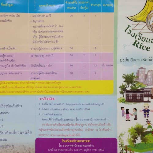 | คำอธิบาย : ตัวอย่างเอกสารแผ่นพับ โรงเรียนข้าวและชาวนา |