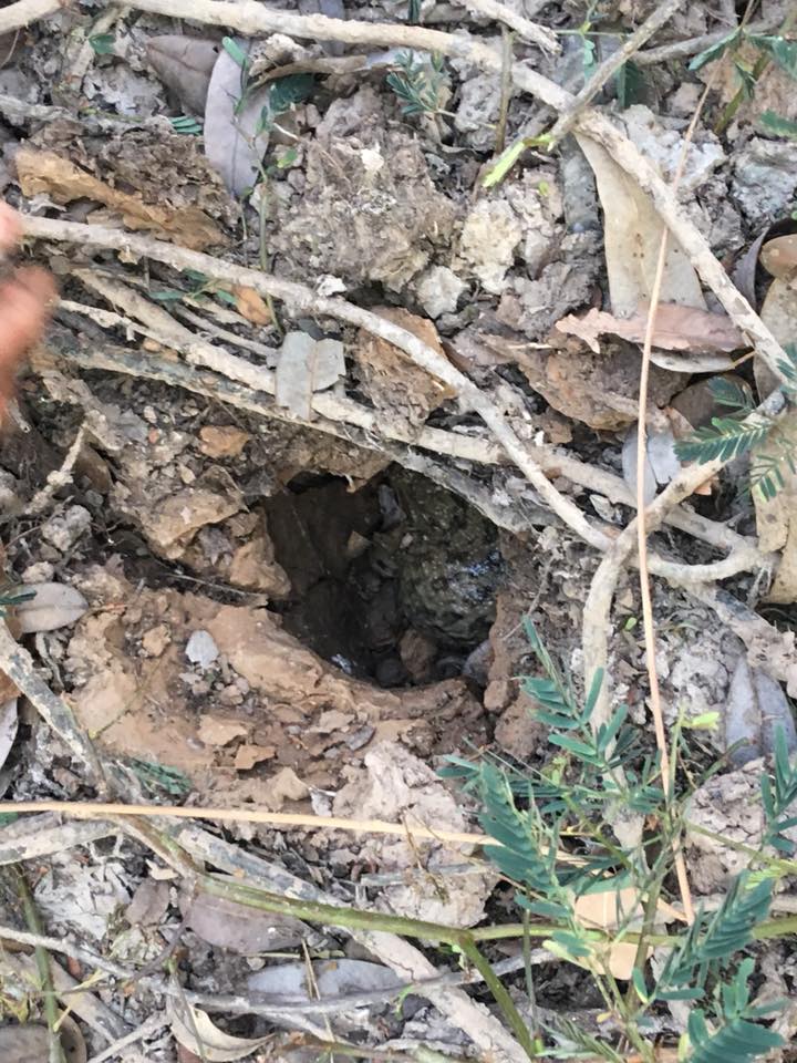 | คำอธิบาย : โพรงใต้ดินที่กบจำศีล ชุมชนชาวกูยบ้านกู่ อ.ปรางค์กู่ จ.ศรีสะเกษ มีความเชื่อว่า ในวันขึ้น 3 ค่ำ เดือน 3 จะมีปรากฏการณ์มหัศจรรย์เกิดขึ้น 3 อย่างคือ 1.กบไม่มีปาก คือจะมีแผ่นเยื่อเกิดขึ้นปิดรูกบ เป็นอันว่าวันนั้นกบจำศีล ไม่ฆ่าสัตว์อื่นๆ เป็นอาหาร 2.นากไม่มีรูทวาร คือมีแผ่นเยื่อเกิดขึ้นปิดทวารหนักของตัวนาก เป็นอันว่านากจะไม่ขับถ่ายในวันนั้น เพราะไม่ได้กินอาหาร และ 3.มะขามป้อมจะมีรสหวาน ตามธรรมชาติ กบหายใจทางผิวหนัง และยังหายใจโดยใช้ปอด โดยอากาศจะผ่านเข้าทางรูจมูกสู่ช่องปาก แล้วเข้าสู่หลอดลมและปอด เยื่อบุช่องปากของกบจะมีเส้นเลือดฝอยมากมายเพื่อใช้ในการแลกเปลี่ยนอากาศ กบจําศีล คือ การปรับตัวเข้ากับสิ่งแวดล้อม เนื่องจากช่วงฤดูหนาว (รวมถึงฤดูแล้ง) แหล่งน้ำตามธรรมชาติโดยทั่วไปจะแห้งขอด อาหารของกบจะขาดแคลน ต่างจากฤดูฝนซึ่งมีสัตว์และแมลงตัวเล็ก ให้หากิน จึงเป็นช่วงเวลาที่กบ จะฝังตัวหลบอยู่ในโพรงใต้ดิน หรือ โคลนตามบ่อและคู อย่างสงบ นอนสงบนิ่ง หลับตา ปิดรูจมูก และหุบปากสนิท ใช้ผิวหนังทำหน้าที่หายใจเป็นส่วนใหญ่ เพื่อให้สูญเสียพลังงานภายในตัวน้อยที่สุด หลีกเลี่ยงบรรยากาศที่หนาวเย็นในฤดูหนาว (รวมถึงอากาศร้อนในฤดูแล้ง) อาหารที่ใช้เลี้ยงตัวเองในระหว่างนี้จะได้จากไขมันซึ่งสะสมอยู่ภายในร่างกาย จึงเรียกการปรับตัวเข้ากับสิ่งแวดล้อมนี้ว่า กบจำศีล |
