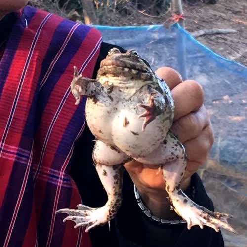 | คำอธิบาย : กบที่ถูกจับออกมาจากโพรงใต้ดินระหว่างจำศีล ชุมชนชาวกูยบ้านกู่ อ.ปรางค์กู่ จ.ศรีสะเกษ มีความเชื่อว่า ในวันขึ้น 3 ค่ำ เดือน 3 จะมีปรากฏการณ์มหัศจรรย์เกิดขึ้น 3 อย่างคือ 1.กบไม่มีปาก คือจะมีแผ่นเยื่อเกิดขึ้นปิดรูกบ เป็นอันว่าวันนั้นกบจำศีล ไม่ฆ่าสัตว์อื่นๆ เป็นอาหาร 2.นากไม่มีรูทวาร คือมีแผ่นเยื่อเกิดขึ้นปิดทวารหนักของตัวนาก เป็นอันว่านากจะไม่ขับถ่ายในวันนั้น เพราะไม่ได้กินอาหาร และ 3.มะขามป้อมจะมีรสหวาน ตามธรรมชาติ กบหายใจทางผิวหนัง และยังหายใจโดยใช้ปอด โดยอากาศจะผ่านเข้าทางรูจมูกสู่ช่องปาก แล้วเข้าสู่หลอดลมและปอด เยื่อบุช่องปากของกบจะมีเส้นเลือดฝอยมากมายเพื่อใช้ในการแลกเปลี่ยนอากาศ กบจําศีล คือ การปรับตัวเข้ากับสิ่งแวดล้อม เนื่องจากช่วงฤดูหนาว (รวมถึงฤดูแล้ง) แหล่งน้ำตามธรรมชาติโดยทั่วไปจะแห้งขอด อาหารของกบจะขาดแคลน ต่างจากฤดูฝนซึ่งมีสัตว์และแมลงตัวเล็ก ให้หากิน จึงเป็นช่วงเวลาที่กบ จะฝังตัวหลบอยู่ในโพรงใต้ดิน หรือ โคลนตามบ่อและคู อย่างสงบ นอนสงบนิ่ง หลับตา ปิดรูจมูก และหุบปากสนิท ใช้ผิวหนังทำหน้าที่หายใจเป็นส่วนใหญ่ เพื่อให้สูญเสียพลังงานภายในตัวน้อยที่สุด หลีกเลี่ยงบรรยากาศที่หนาวเย็นในฤดูหนาว (รวมถึงอากาศร้อนในฤดูแล้ง) อาหารที่ใช้เลี้ยงตัวเองในระหว่างนี้จะได้จากไขมันซึ่งสะสมอยู่ภายในร่างกาย จึงเรียกการปรับตัวเข้ากับสิ่งแวดล้อมนี้ว่า กบจำศีล |