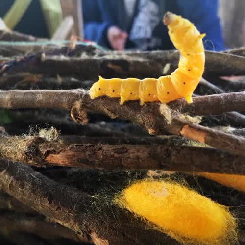| คำอธิบาย : ไหมสุก หมายถึงหนอนไหมที่กินใบหม่อนเต็มที่แล้ว ก็จะเริ่มสุก พร้อมที่จะพ่นเส้นใย ในระยะนี้หนอนไหมพร้อมที่จะพ่นใยไหมออกมาเพื่อห่อหุ้มตัว เรียกว่าไหมทำรัง |