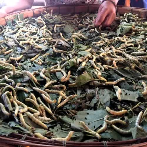 | คำอธิบาย : ชุมชนชาวกูยบ้านกู่ อ.ปรางค์กู่ จ.ศรีสะเกษ นอกจากจะทำนาปลูกข้าว ยังมีการเลี้ยงไหมทอผ้า ในภาพคือไหมกินใบหม่อน |