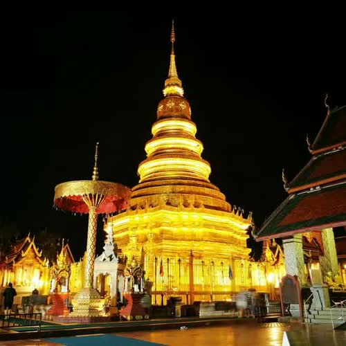 "วัดพระธาตุหริภุญชัยวรมหาวิหาร ยามค่ำ".