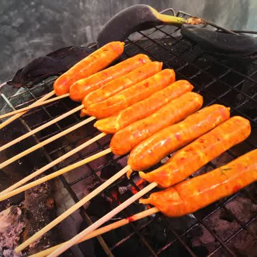 | คำอธิบาย : ไส้อั่ว (จิ๋ว) ที่จำหน่ายในร้านค้าบริเวณ หมู่บ้านแม่กำปอง ตำบลห้วยแก้ว กิ่งอำเภอแม่ออน จังหวัดเชียงใหม่ อั่ว หมายถึง แทรก หรือยัดไว้ตรงกลาง ไส้อั่ว จึงหมายถึง ไส้ที่มีการนำสิ่งของยัดไว้ ซึ่งส่วนใหญ่มักใช้ไส้หมูและเนื้อหมู |