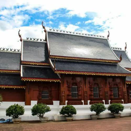 | คำอธิบาย : วัดบ้านเด่นสะหรีศรีเมืองแกน ตั้งอยู่ที่ ตำบลอินทขิล อำเภอแม่แตง จังหวัดเชียงใหม่ เดิมเป็นวัดเล็กๆ ครูบาเจ้าเทือง และ ครูบาบุญชุ่ม ได้ปรับปรุงก่อสร้างวัดบ้านเด่นสะหรีศรีเมืองแกน ขึ้นใหม่เมื่อ พ.ศ ๒๕๓๔ บนพื้นที่ ๘๐ ไร่ วัดนี้สร้างอยู่บนเนินเขาสูง แบบล้านนาประยุกต์ เป็นการผสมผสานระหว่างวัดบ้านกับวัดป่า และเป็นที่ประดิษฐานของพระพุทธรูปดังทั่วประเทศ |