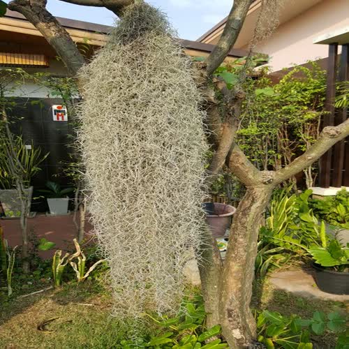 | คำอธิบาย : เคราฤษี หรือ มอสสเปน เป็นพืชในวงศ์สับปะรดที่ไม่มีราก ต้นห้อยย้อยลงมาจากคาคบไม้เป็นสายยาว พบน้อยที่มีรากเส้นเล็กๆ งอกออกมา ดอกกลิ่นหอมอ่อน ๆ ดูดน้ำโดยทางใบสีเทาเงิน เนื่องจากมีไตรโคมสีเงินบนใบ ช่วยให้ดูดน้ำจากอากาศที่ชุ่มชื้นได้ดี |