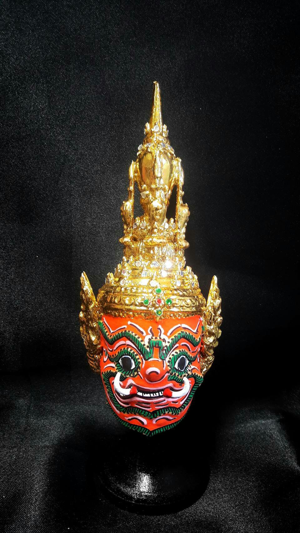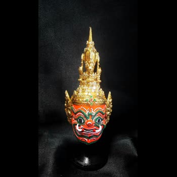 | คำอธิบาย : อากาศตะไล เป็นยักษิณี รักษาด่านทางอากาศ มงกุฏยอดน้ำเต้า 5 ยอด ปากแสยะ ตาโพลง มีหน้าเล็กๆ สามหน้า ด้านหลัง |