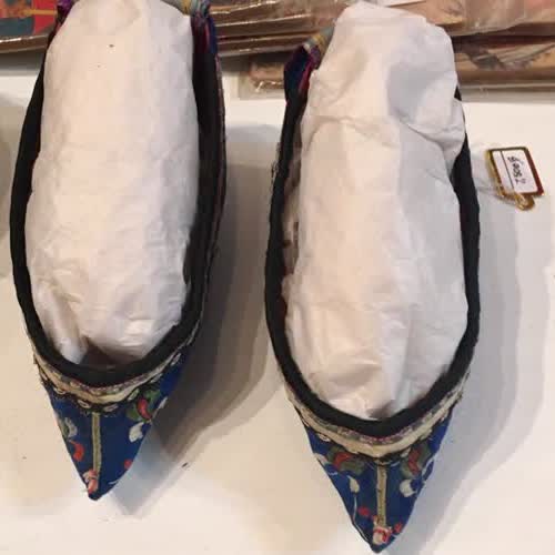 | คำอธิบาย : รองเท้ากลีบบัว คือ รองเท้าที่ผู้หญิงจีนโบราณนิยมสวมใส่เพื่อมัดเท้าให้มีขนาดเล็กกระจิริด ด้วยเชื่อกันว่าสาวที่มีเท้าเล็กและห่อเป็นรูปดอกบัว ถือเป็นหญิงงาม |