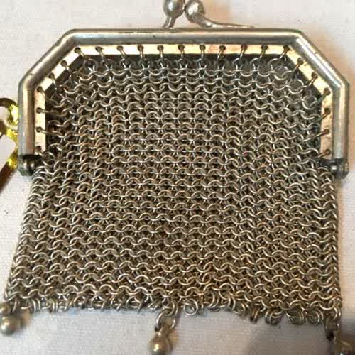 | คำอธิบาย : ถุงเงินโบราณ ทำจากโลหะ จัดแสดงในนิทรรศการมังกรและหงส์ |