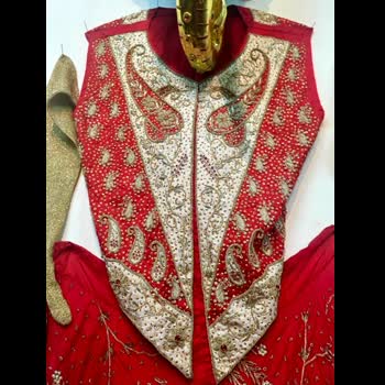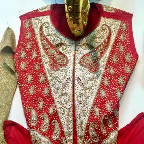 | คำอธิบาย : เสื้อเจ้าสาวอินเดีย ตัวเสื้อปักเป็นลายดอกไม้ มีลูกปัดและเลื่อมปักมือ |