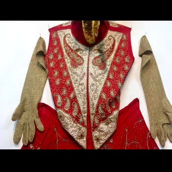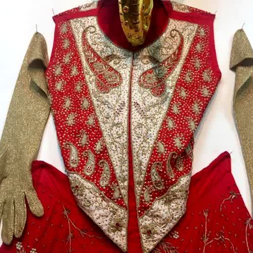 | คำอธิบาย : เสื้อเจ้าสาวอินเดีย ตัวเสื้อปักเป็นลายดอกไม้ มีลูกปัดและเลื่อมปักมือ |