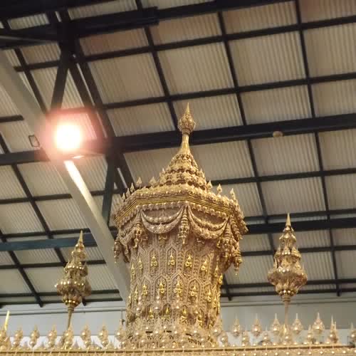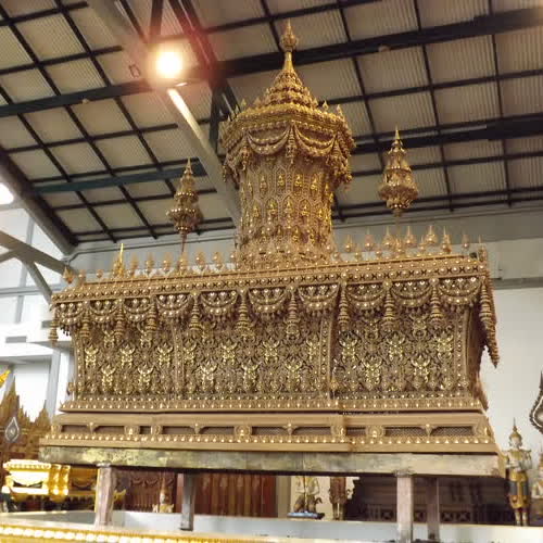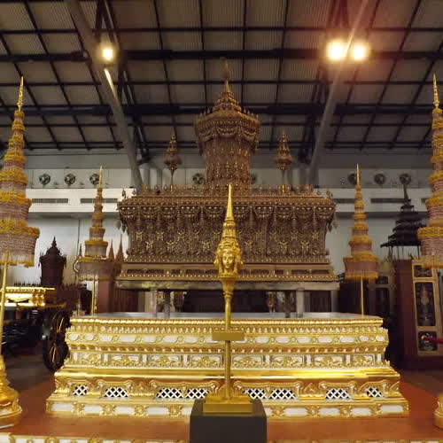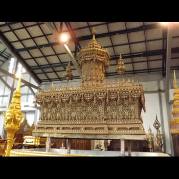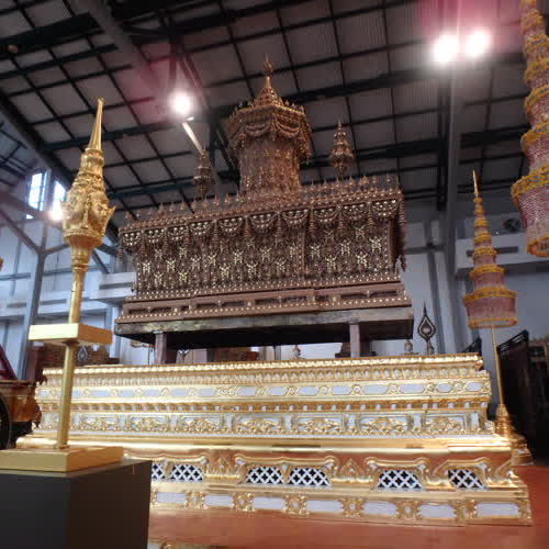 | คำอธิบาย : พระโกศจันทน์และพระจิตกาธาน ในพระราชพิธีถวายพระเพลิงพระบรมศพ พระบาทสมเด็จพระปรมินทรมหาภูมิพลอดุลยเดช จัดแสดง ณ โรงราชรถ พิพิธภัณฑสถานแห่งชาติ พระนคร |