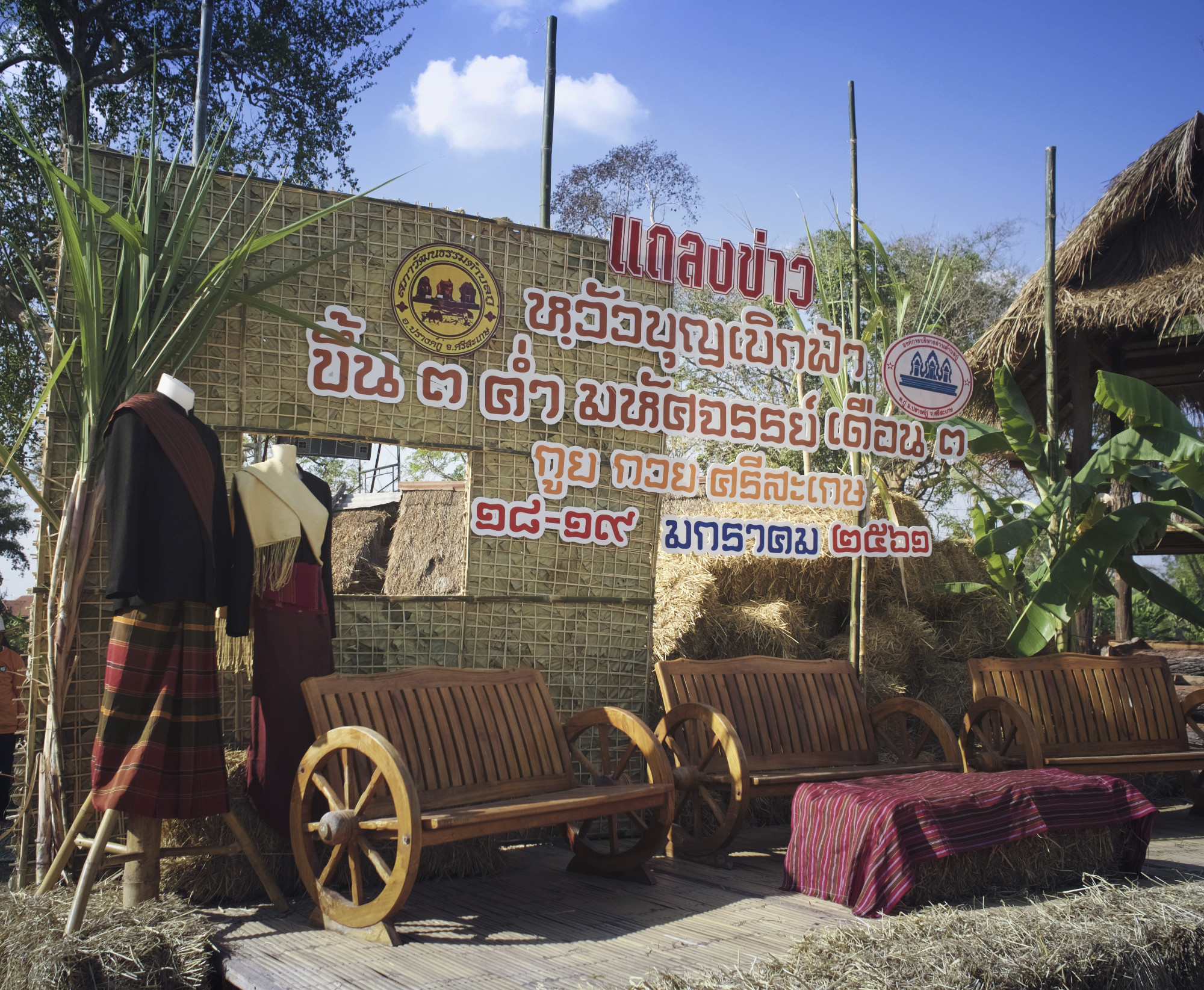| คำอธิบาย : สถานที่จัดแถลงข่าวงานหวัวบุญเบิกฟ้า อ.ปรางค์กู่ จ.ศรีสะเกษ ปี 2561 |