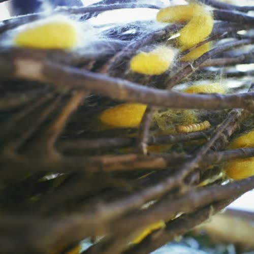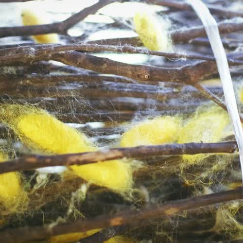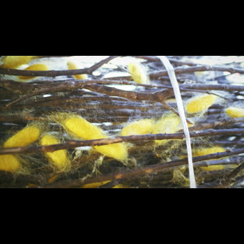 | คำอธิบาย : รังไหมที่พร้อมนำไปสาว เพื่อนำไปทอผ้า |