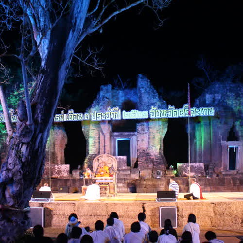 | คำอธิบาย : พระเทศน์เป็นภาษากูย ในคืนก่อนวันงานหวัวบุญเบิกฟ้า |