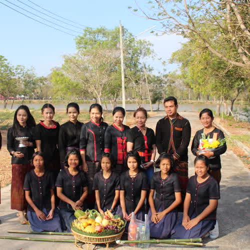 | คำอธิบาย : ชาวบ้านของแต่ละหมู่บ้าน เตรียมเข้าขบวนแห่ในงานหวัวบุญเบิกฟ้า ปี 2561 |