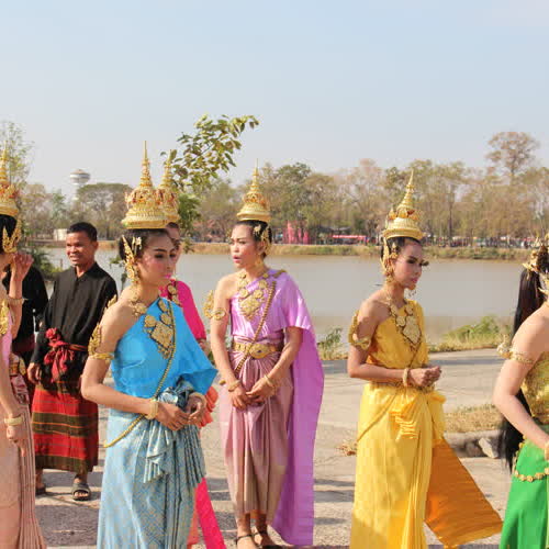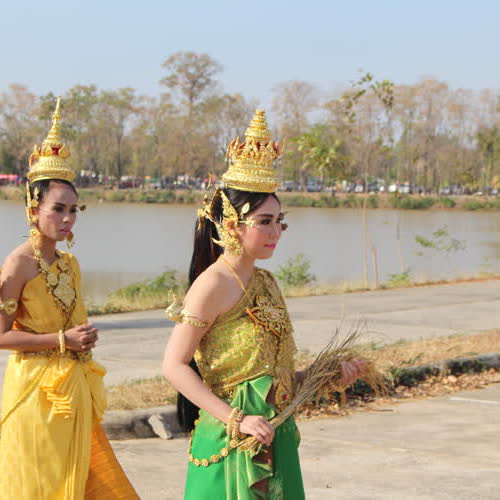 | คำอธิบาย : เทพีสวยๆ เตรียมเข้าขบวนแห่ในงานหวัวบุญเบิกฟ้า ปี 2561 |