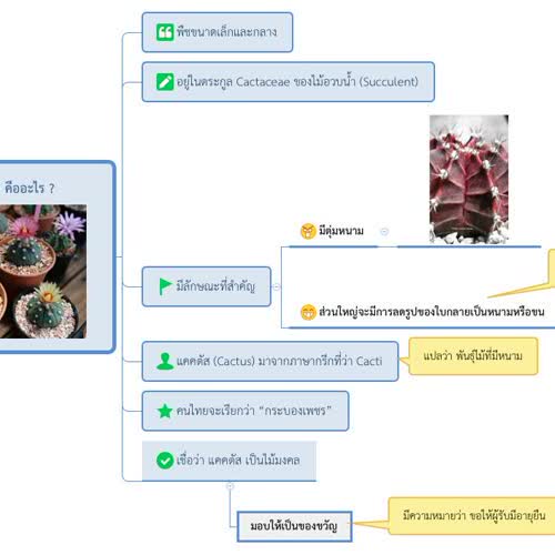 | คำสำคัญ : cactus, แผนที่ความคิด, การเลี้ยงแคคตัส, กระบองเพชร, mind map, แคคตัส |