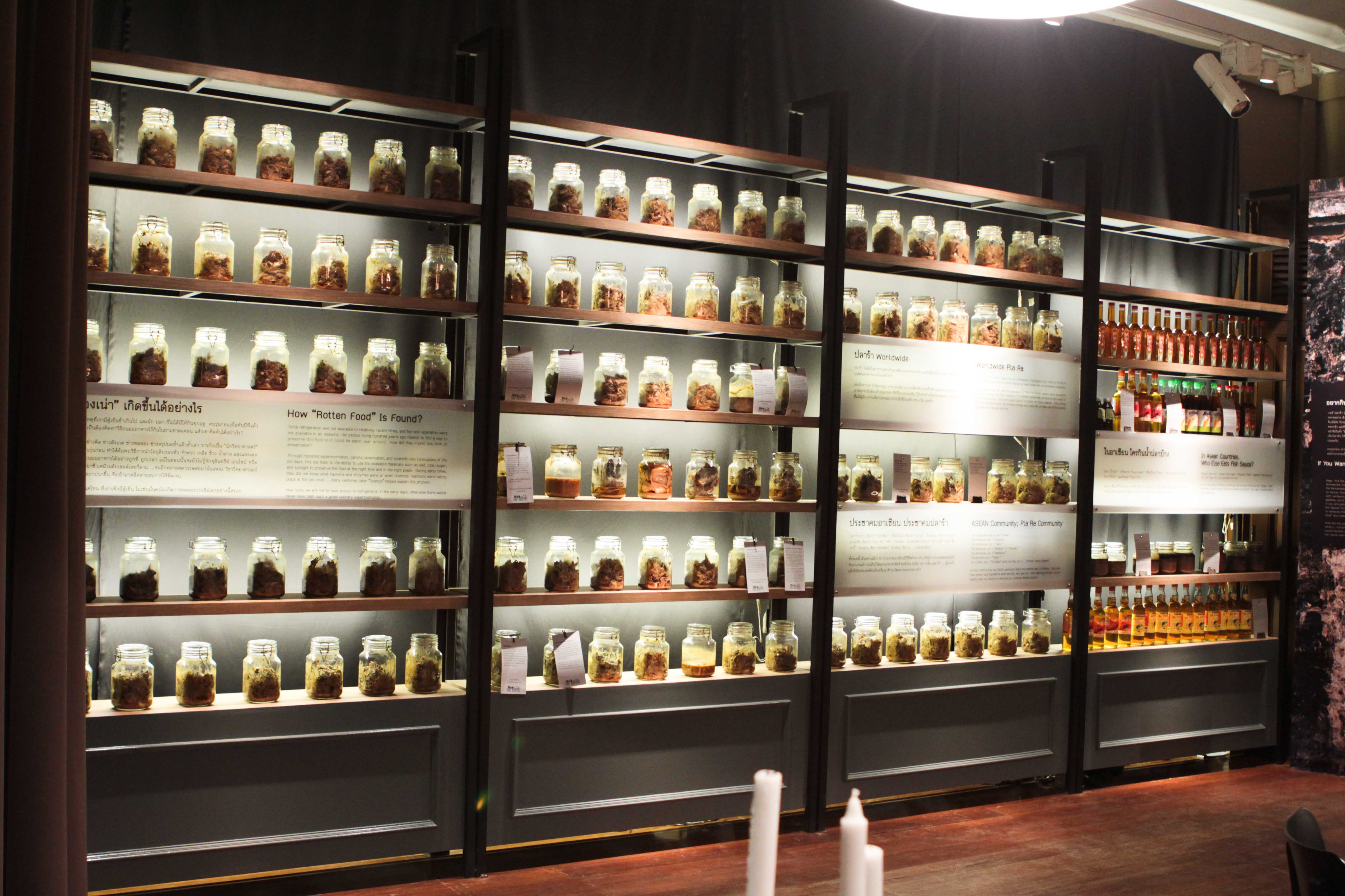 | คำอธิบาย : ภาพภายในนิทรรศการชั่วคราว เรื่อง กินของเน่า แสดงตัวอย่างของเน่าในประชาคมอาเซียน เช่น น้ำปลา ปลาร้า |