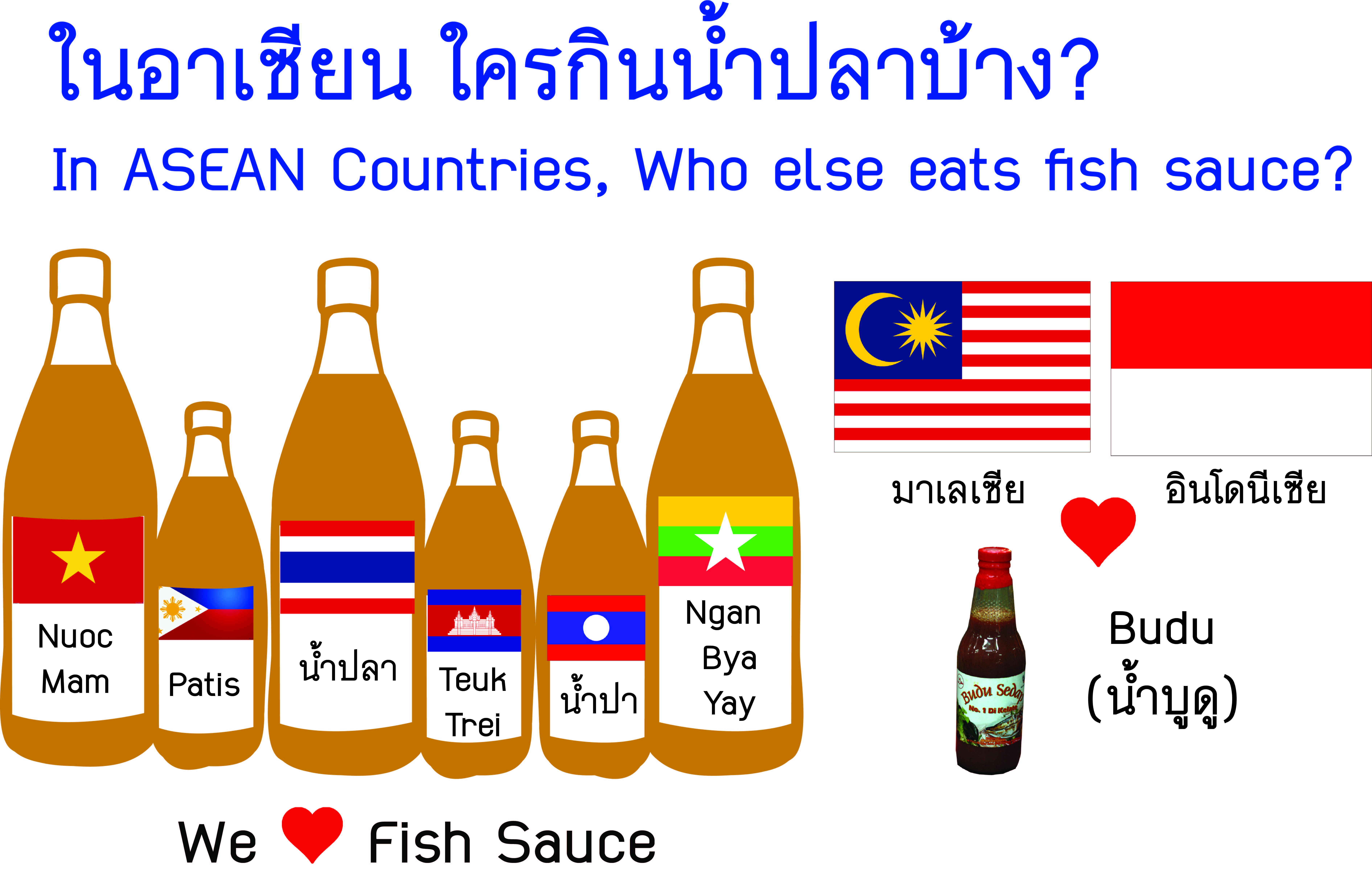 | คำอธิบาย : ภาพประชาคมน้ำปลาในอาเซียน ซึ่งมีความแตกต่างเพียงชื่อเรียกตามภาษาของแต่ละประเทศ |
