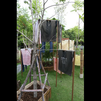 | คำอธิบาย : ภาพถ่ายบรรยากาศนิทรรศการชั่วคราว เรื่อง ค้าของป่าบอกเล่าถึงการนำไม้ให้สีที่อยู่ในป่าและภูมิปัญญาชาวบ้านในกระบวนการดึงสีจนเกิดเป็นสีย้อมผ้าธรรมชาติที่ไม่ทำลายสิ่งแวดล้อม ตัวอย่างไม้ให้สี เช่น มะเกลือให้สีดำ ขนุนให้สีเหลืองและสีน้ำตาล ครามให้สีน้ำเงิน และครั่งให้สีแดง เป็นต้น |