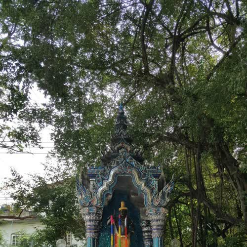 | คำอธิบาย : ท้าวหิรัญพนาสูร (พระเจ้าฮู) เป็นอสูร คอยติดตามป้องกันภยันตราย พระบาทสมเด็จพระมงกุฎเกล้าเจ้าอยู่หัวและข้าราชบริพาร เมื่อการสร้างพระราชวังพญาไท เสร็จเรียบร้อยแล้ว จึงได้โปรดเกล้าฯ ให้ช่างหล่อรูปท้าวหิรัญพนาสูร ด้วยทองสัมฤทธิ์ มีชฎาเทริด อย่างไทยโบราณ มีไม้เท้าเป็นเครื่องประดับยศ มีพระราชพิธีบวงสรวง เพื่อเป็นศาลเทพารักษ์ประจำพระราชวังพญาไท |