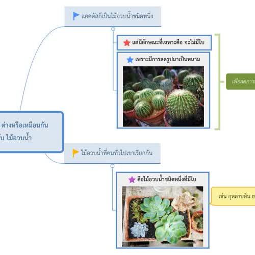 (2561). "แผนที่ความคิด (Mind map) การเลี้ยงแคคตัส - แคคตัสต่างหรือเหมือนกันกับไม้อวบน้ำ".